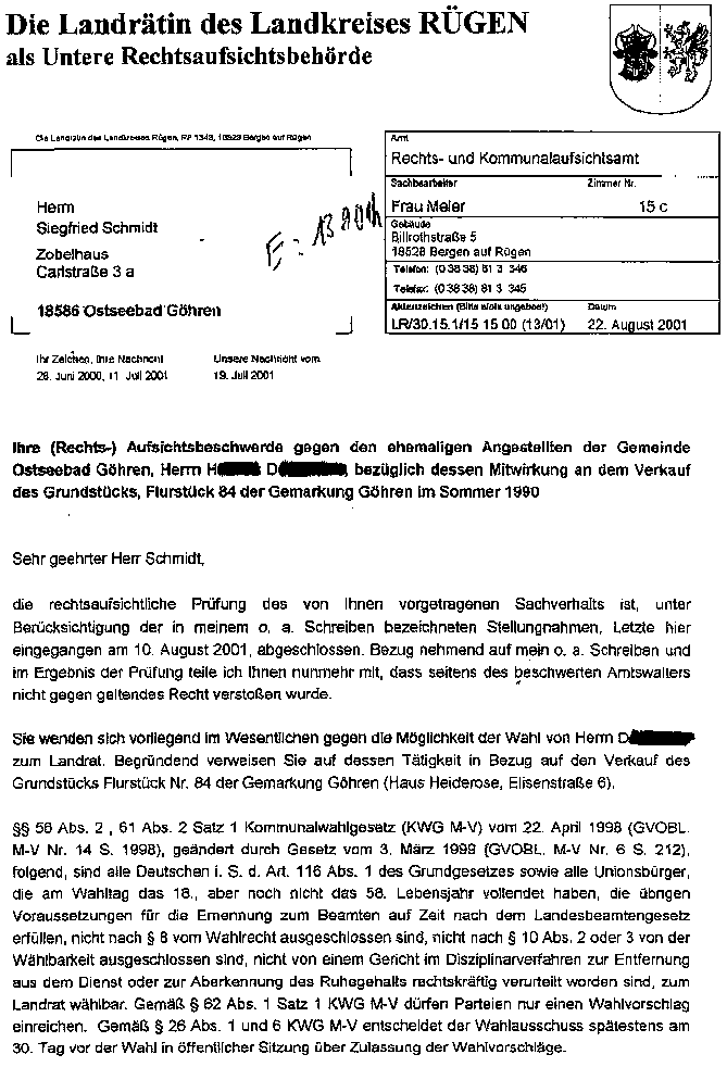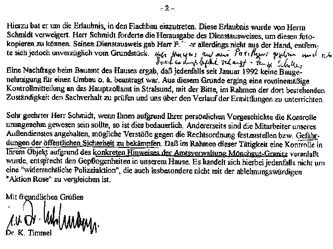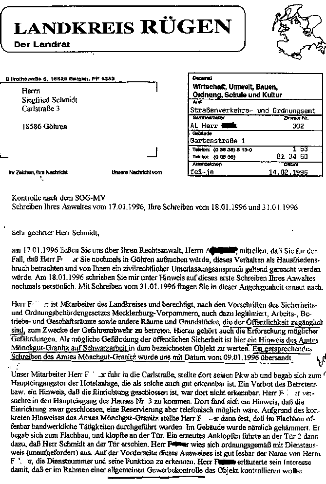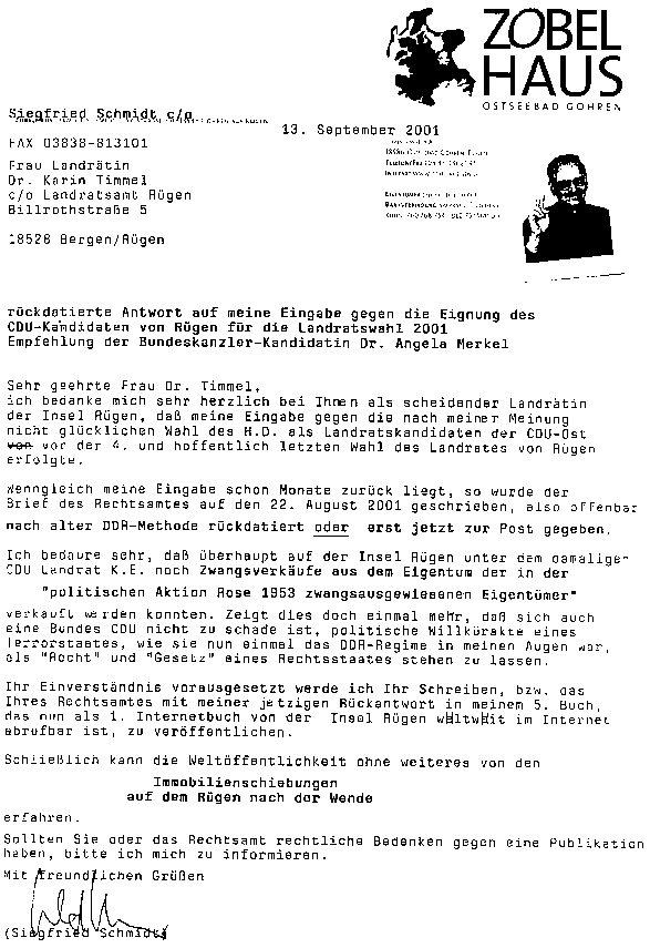 Rügen an Siegfried Schmidt über dessen Anwalt).