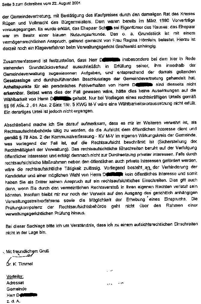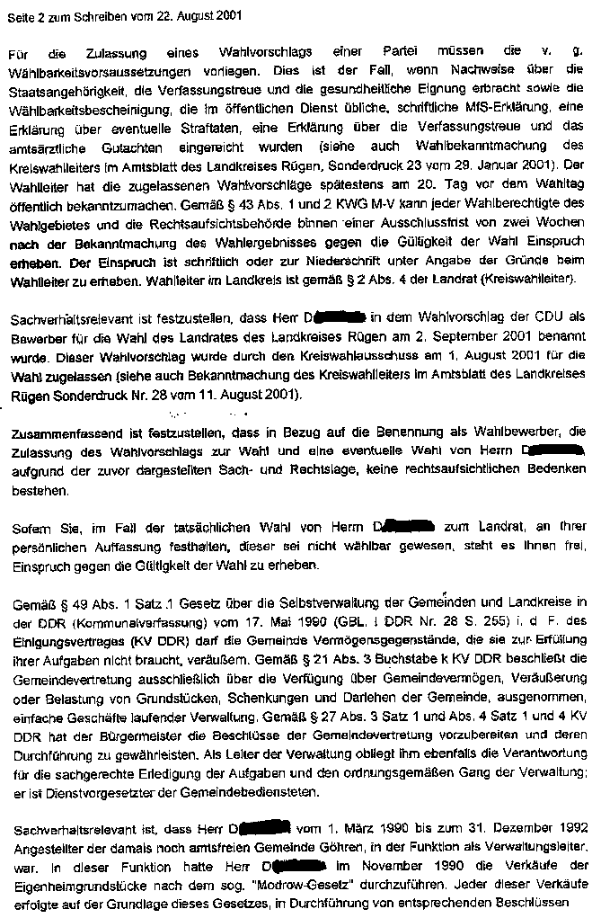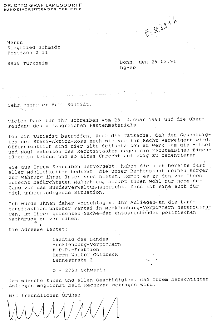 Bürgermeister von der CDU noch 1992 mit einem Brief an ein