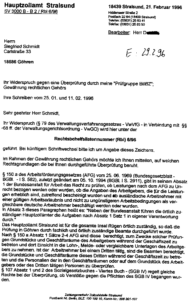 weist sich aus als Mitarbeiter des Hauptzollamtes Stralsund.
