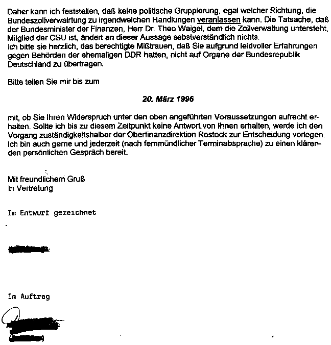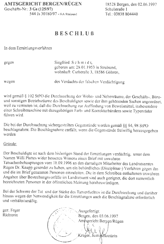 Schreiben der Staatsanwalt Schwerin von 1991 <<<