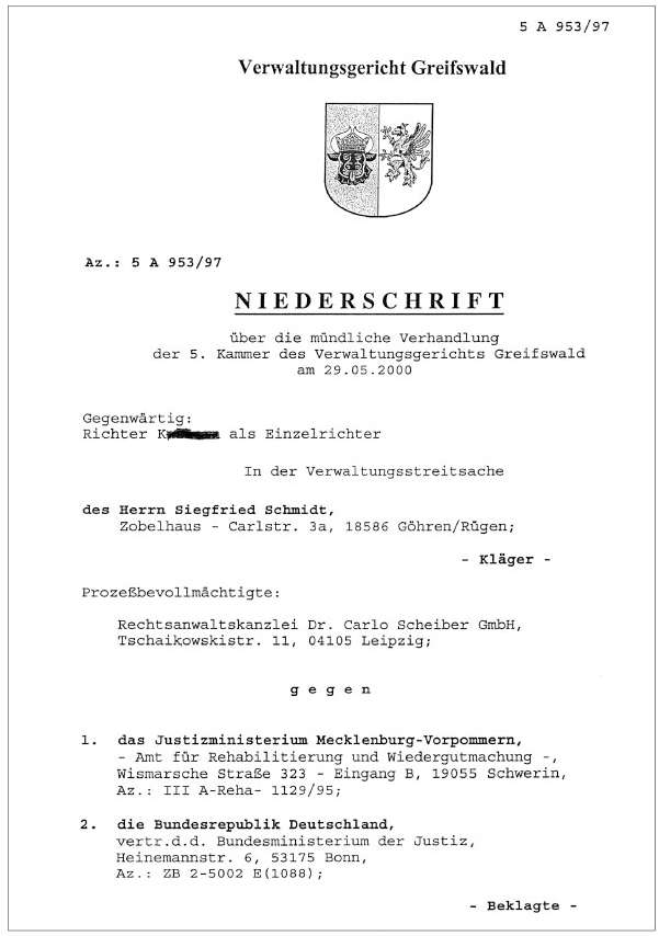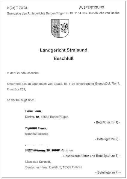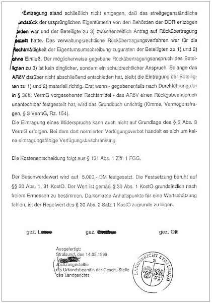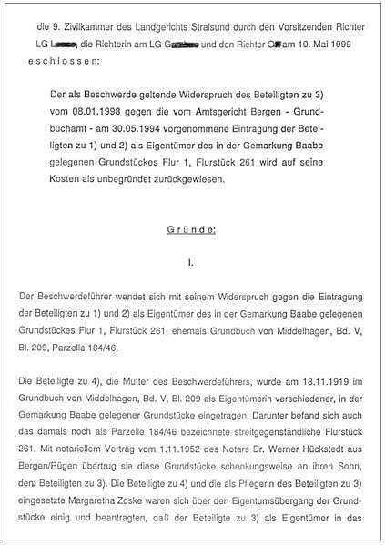 Landgericht Stralsund log dann im Enteignungsurteil von 1999