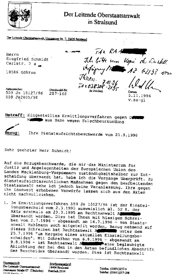 CDU-Bürgermeister Ostseebad Baabe wird durch die Staatsanwaltschaft Stralsund geschützt